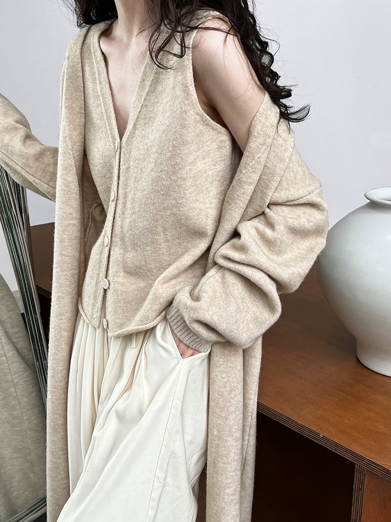 【サイズ】 ワンサイズ ・カーディガン 肩幅:56cm 胸囲:フリー 着丈:111cm ・ベスト 肩幅:32cm 胸囲:90cm 着丈:52cm ※採寸により1~4cm程度の誤差が生じる場合がございます 【素材】 ポリエステル、コットン 【カラー】 グレー / ブラック / オートミール 【お届けについて】 こちらの商品は海外店舗より直接発送となる為、 ご入金から商品到着まで2週間から4週間でお届け致します。 (※商品の状況によっては、4週間以上かかる場合もございます) ◼️注意事項 ・タイミングによっては 商品在庫切れにより注文キャンセルとさせていただく恐れもございますので、予めご了承くださいませ。 ・こちらは輸入品となります。日本製とは検品基準が異なる為、新品未使用品でもごくわずかな汚れや ほつれがある場合もございます。 ・仕入れ工場を変えることがあるため、記載サイズと若干異なる場合がございます。 ・商品の色味は、お手持ちのスマートフォンの画面によって実物と若干異なる場合がございます。 ・イメージ違いやサイズ交換等、お客さまご都合による交換、返品は対応出来かねます。 —————————————————— ※ご購入前にこちらをお読みください → https://www.joliy.shop/about —————————————————— 管理番号:OU0649